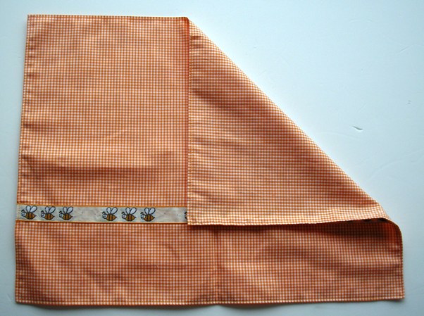 ランチ3点セット(オレンジと白のギンガムチェックにハチのチロリアンテープ) お弁当袋・ランチョンマット・コップ入れ 給食 入園 入学 幼稚園 保育園 小学校